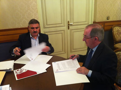 El Presidente de la Diputación Provincial, Javier Santamaría, en representación de la Corporación provincial y Pedro Martín Arcones